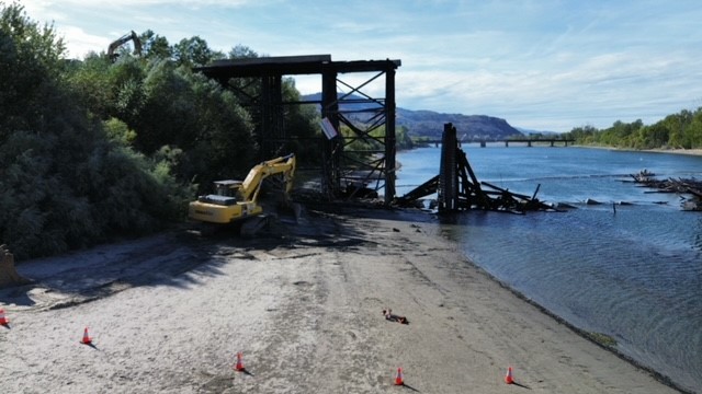 A look at the careful dismantling of Kamloops' historic Red Bridge after the fire. The collaboration between Argo, the BC Ministry of Transportation and Transit, and CEC ensured the work was carried out safely and with respect for this well-known local landmark.